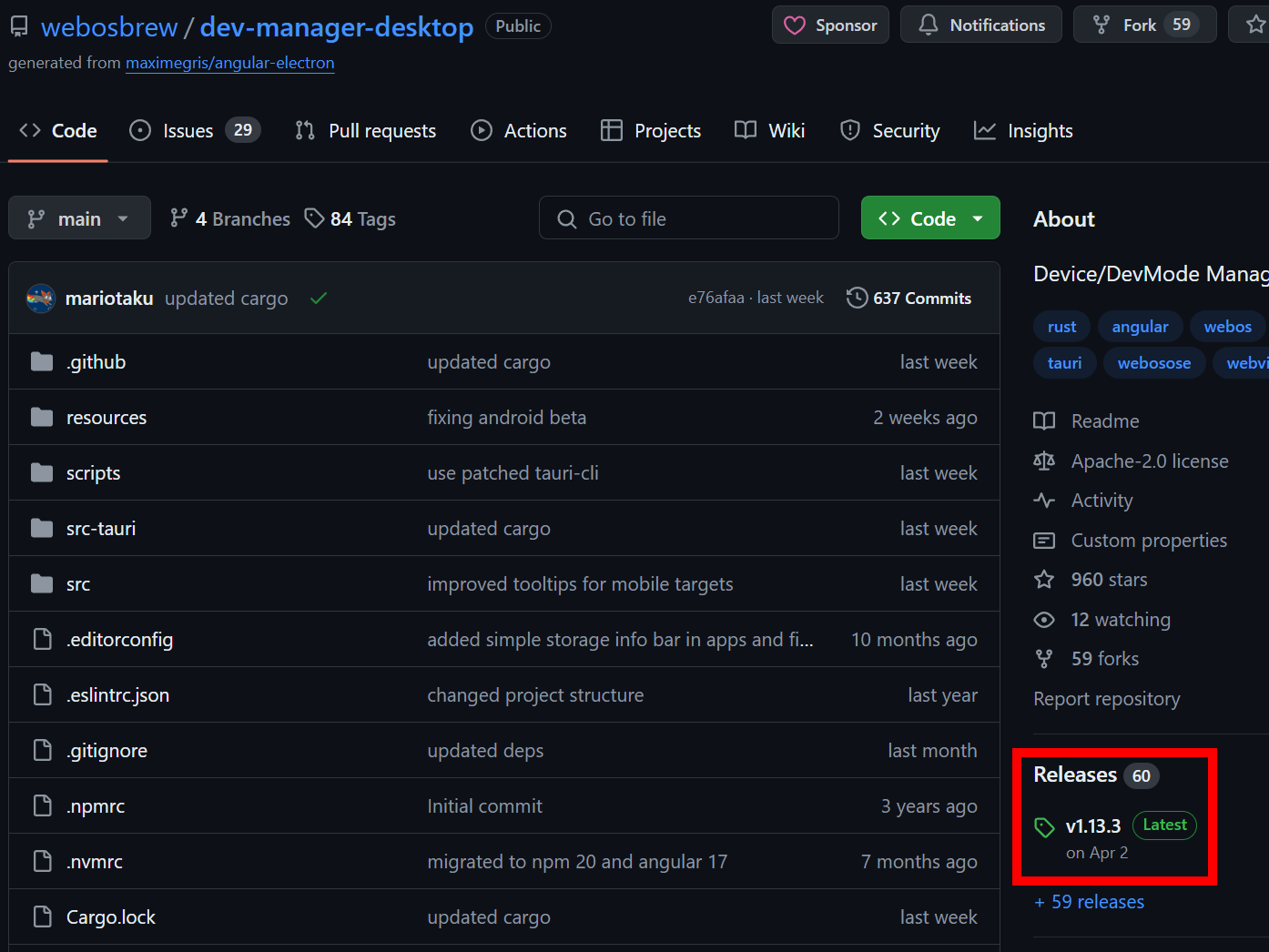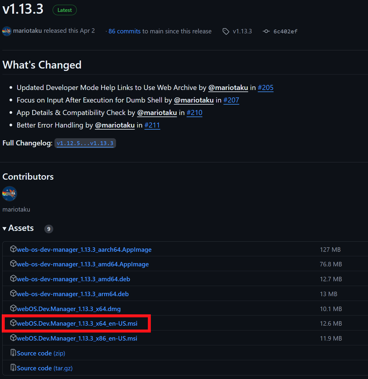 2. 계정을 생성하고 https://github.com/webosbrew/dev-manager-desktop 이곳으로 가서 webOS Dev Manager를 다운로드하여 설치합니다.