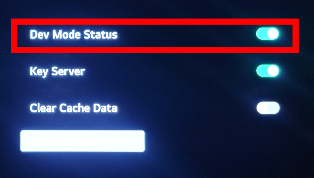 5. Dev Mode Status를 활성화합니다. 재부팅을 하라는 화면이 나오면 재부팅합니다.